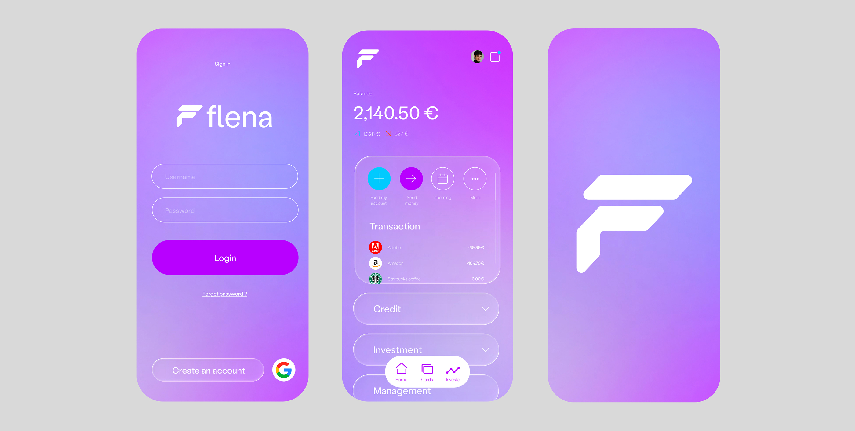 Brand Identity, landing page and app exploration for Flena Bank.