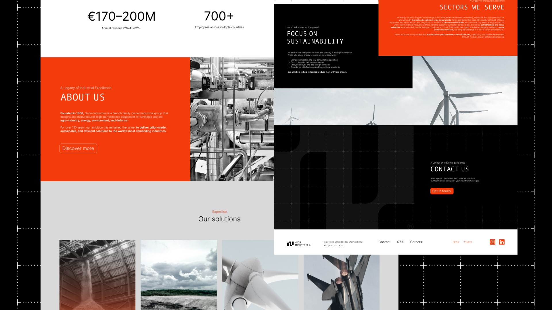 Refonte d'identité visuelle et site internet pour un groupe industriel européen spécialisé dans la conception et la fabrication d'équipements et de machines sur mesure pour des secteurs industriels stratégiques.